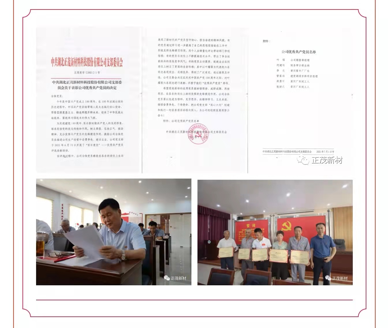 2021年7月30日,湖北正茂新材料科技股份有限公司黨支部公司全體黨員、入黨積極分子以“砥礪初心向復(fù)興、抖擻精神再出發(fā)”為主題,舉行了本月支部主題黨日活動。