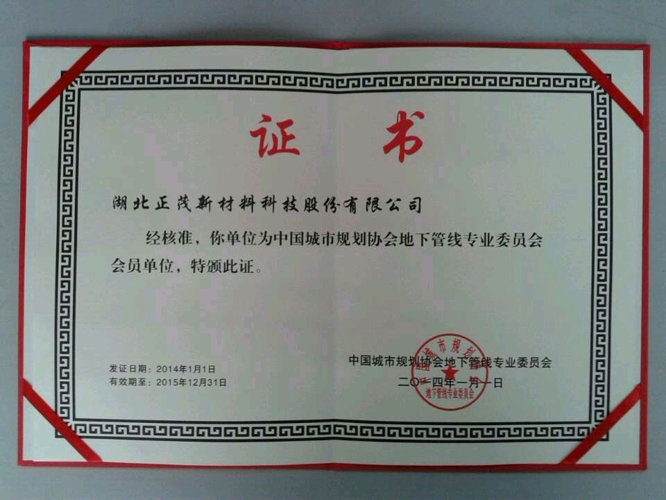 熱烈祝賀正茂順利通過城市規(guī)劃協(xié)會審核,正式成為中國城市規(guī)劃協(xié)會地下管線專業(yè)委員會會員。