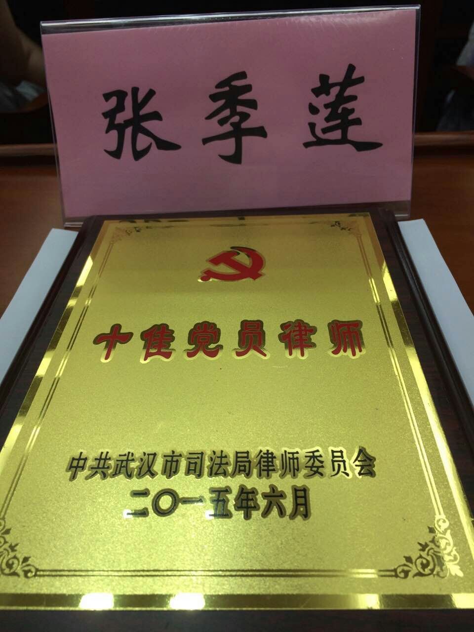 另據(jù)武昌區(qū)黨工委和武漢市司法局黨組召開建黨94周年大會(huì)傳來消息,我司張季蓮?fù)痉謩e被授予2015年“優(yōu)秀共產(chǎn)黨員”和“十佳黨員律師”榮譽(yù)稱號(hào)。