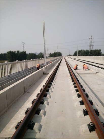 此項(xiàng)目工程中我司主要負(fù)責(zé)鄭徐客運(yùn)專線第九標(biāo)段全線欄桿以及二分部段遮板的預(yù)制及安裝工作。目前,ABC墻現(xiàn)澆混凝土施工、防水等系列橋面系附屬工程已基本完工,現(xiàn)階段主要進(jìn)行鋪設(shè)工程段的修補(bǔ)完善工作、欄桿調(diào)線形和立柱灌漿等工程尾期施工。