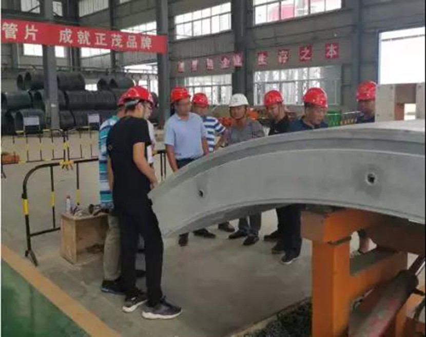 周總一行此次蒞臨正茂管片廠主要考察生產設備,產品質量,供貨能力,同時雙方就武漢地鐵11號線葛店段管片生產進行技術交底。