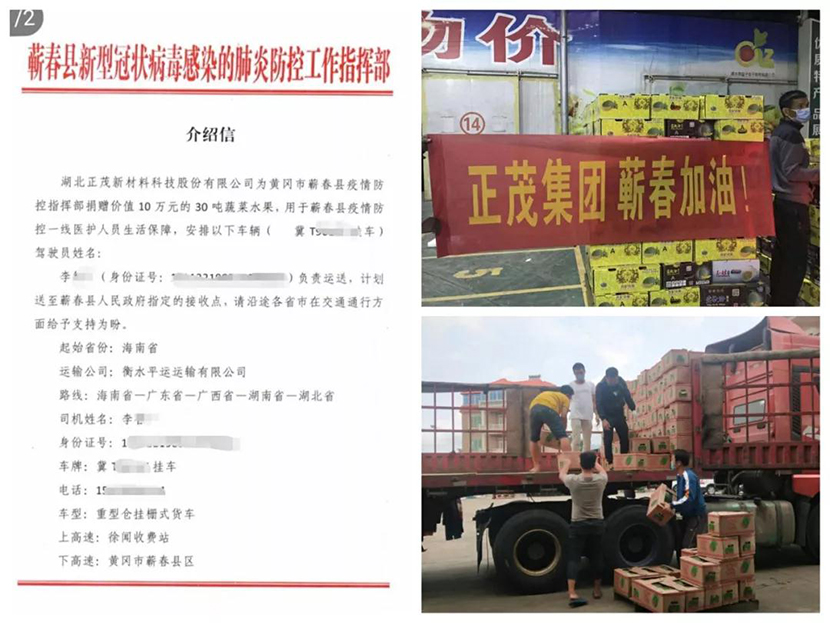 2月19日,集團(tuán)從海南采購的價(jià)值10萬元蔬果共計(jì)30噸運(yùn)抵蘄春縣,支援蘄春抗擊疫情。