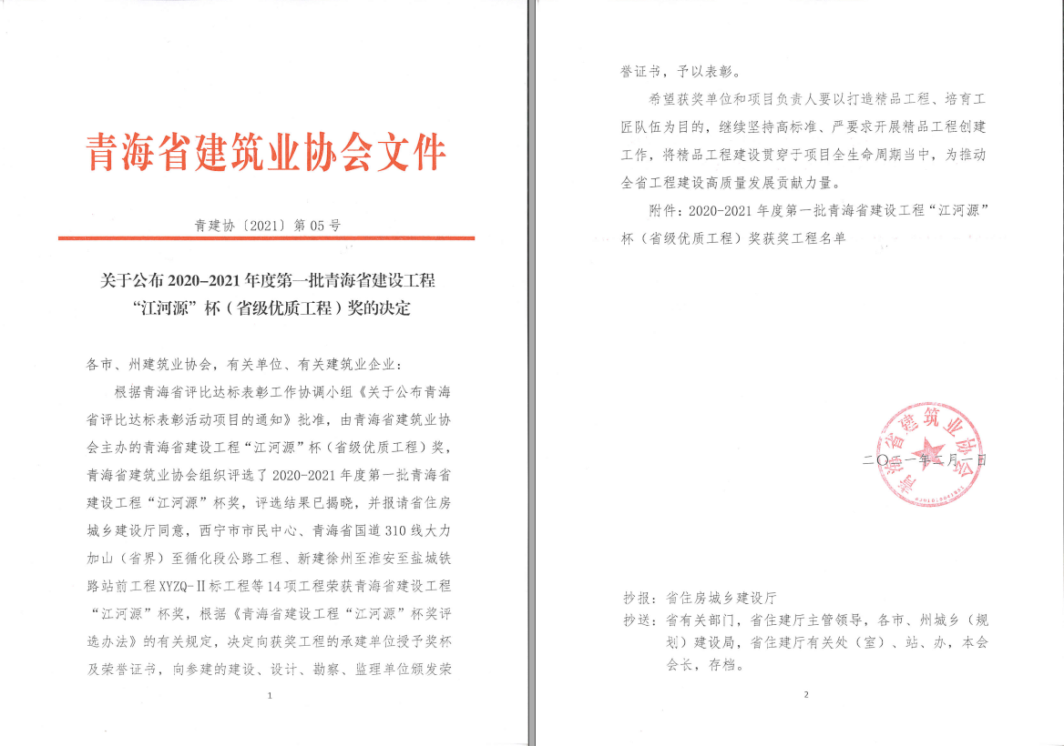 獲青海省建設(shè)工程最高獎(jiǎng)項(xiàng)——